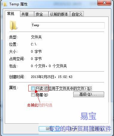 然后选择该Temp文件夹,点击右键,设置该文件夹可以读写操作