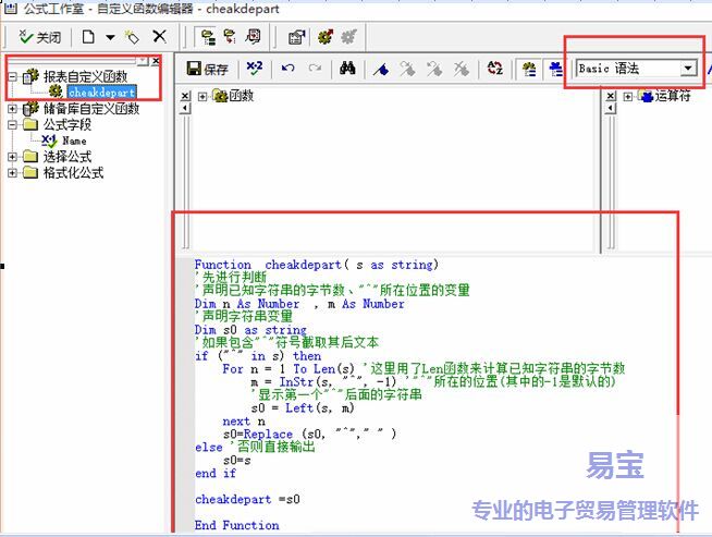 (2)在报表自定义函数里新建一个函数---选择Basic语法,在编辑器里输入: