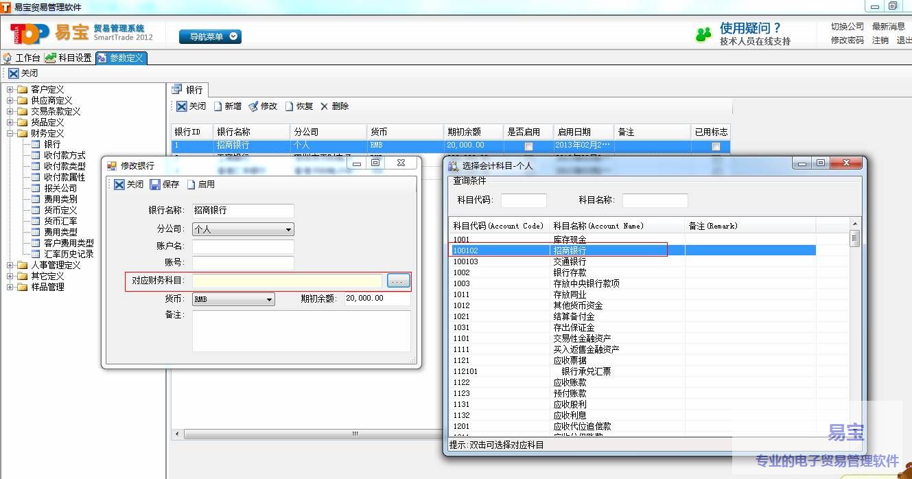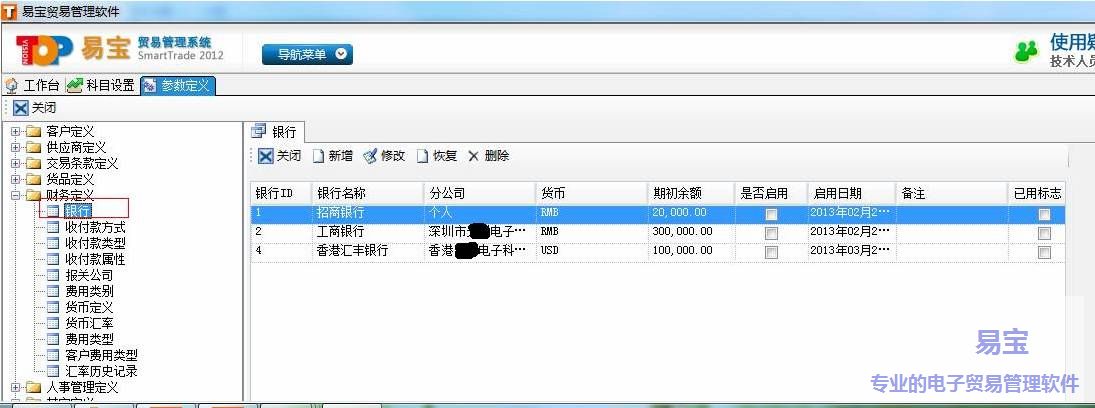 a)设置的地方在:系统管理==>参数定义==>财务定义==>银行,具体请见如下截图: