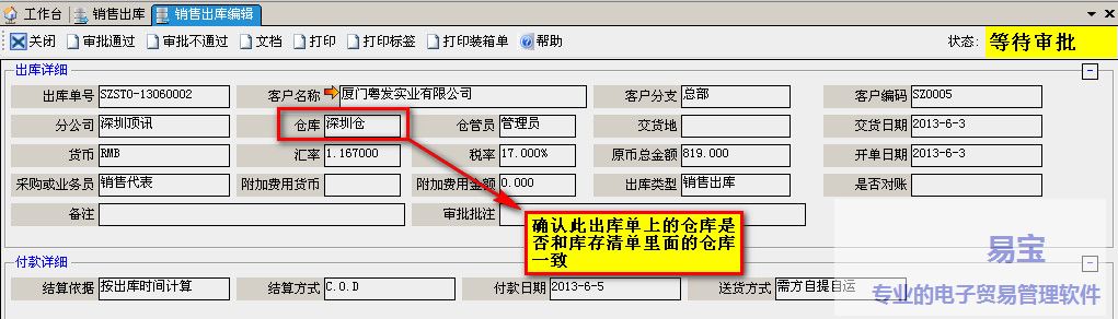 c.启用发货确认的出库,需要确认出库单是否已经确认通过