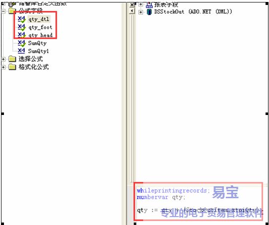(2)添加页眉b和详细资料b(右击页眉下空白出-节专家-选择页眉-插入),把qty_dtl: 拖放到详细资料b里,qty_foot拖放到页脚里,qty_head拖放到页眉a里