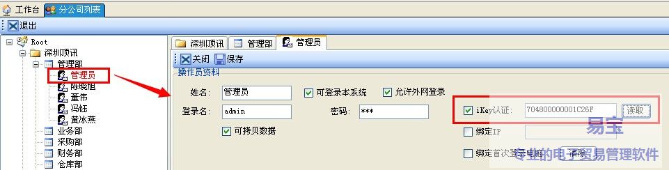 注意,如系统没有“Ikey身份认证”功能,那么在“导航菜单—系统管理—组织机构—分公司列表”也不可以针对操作员读取Ikey。